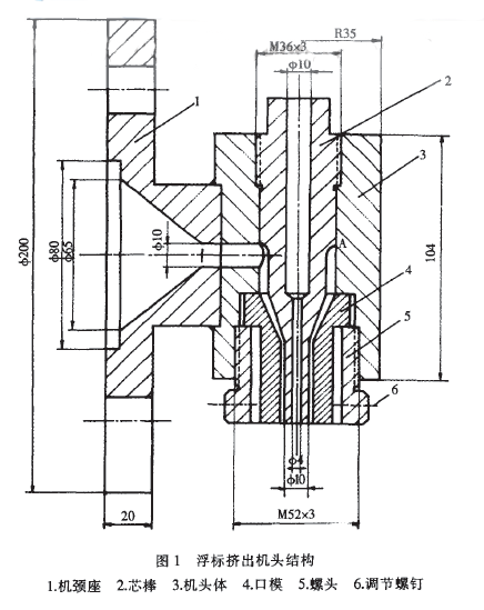 擠出機頭結構如圖1所示。