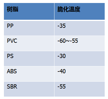 從表中可以看出PVC(聚氯乙烯)的低溫脆化優于PP(聚丙烯)